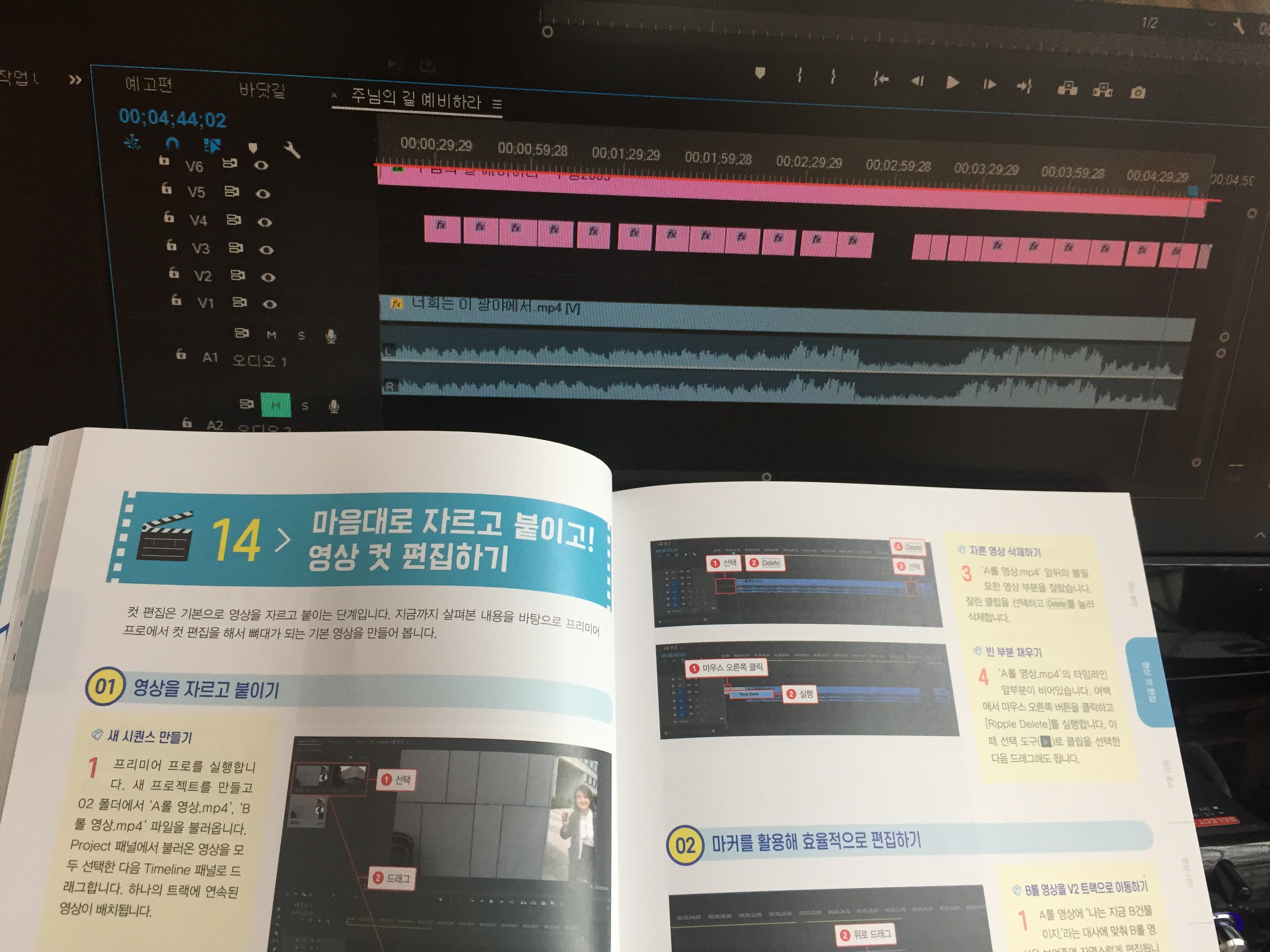 프리미어 프로 전문 서적은 아니기 때문에 고급 기능까지 다루고 있지는 않지만, 영상 편집의 기초 기법들은 큰 무리 없이 익힐 수 있었다.