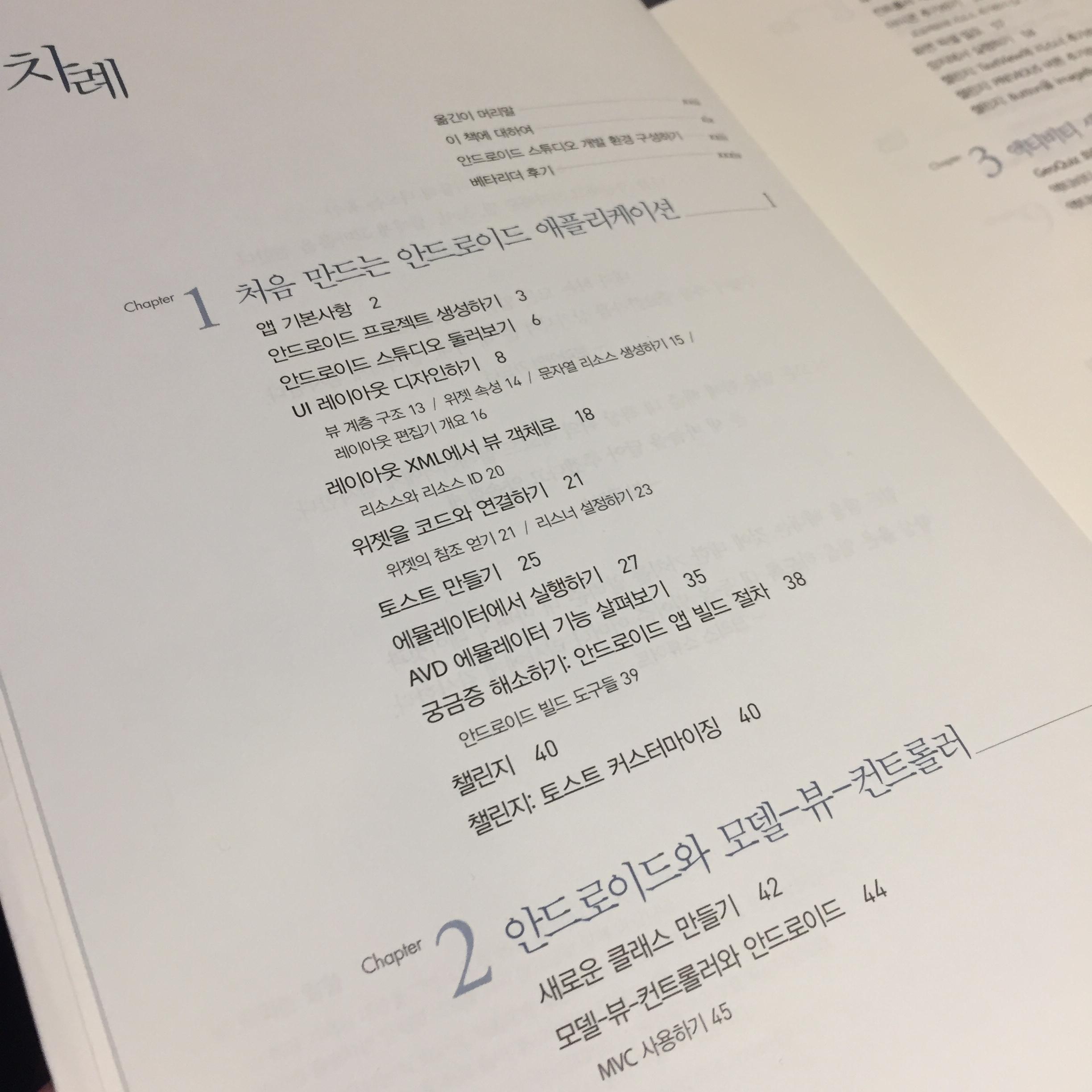 오래 전부터 안드로이드 앱을 만들어보고 싶어서 여러 권의 책을 읽어보았습니다. 주로 자바에 관련된 책들이었는데 꽤 여러 권의 책들을 읽었지만 아직 변변찮은 결과물을 하나 만들어보지는 못했습니다. 시간은 흐르고 버전들은 계속 올라가는 데 예전에 가지고 있던 책들만으로는 한계를 많이 보게 되었습니다.