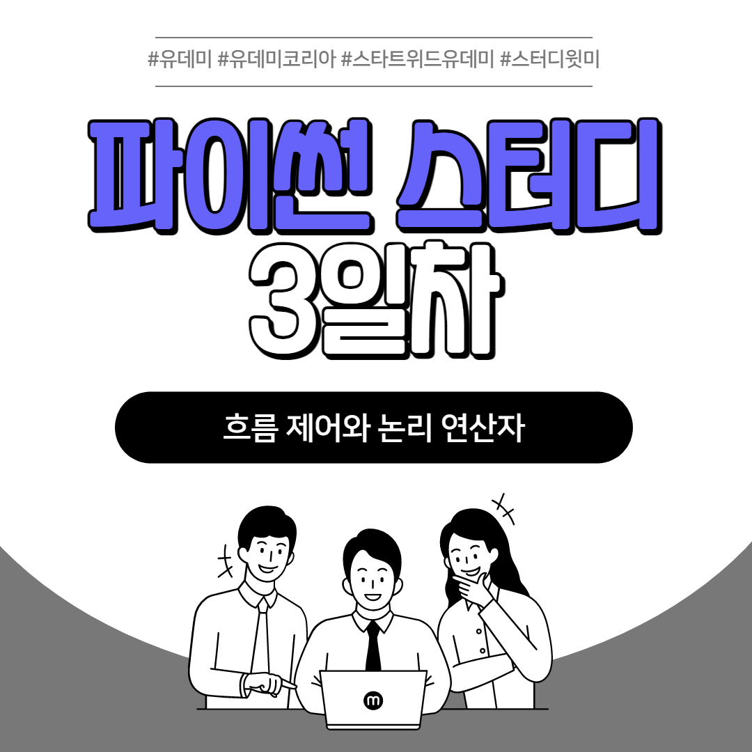 #유데미 #유데미코리아 #스타트위드유데미 #스터디윗미 #코딩 #파이썬 #조건문 #논리연산자