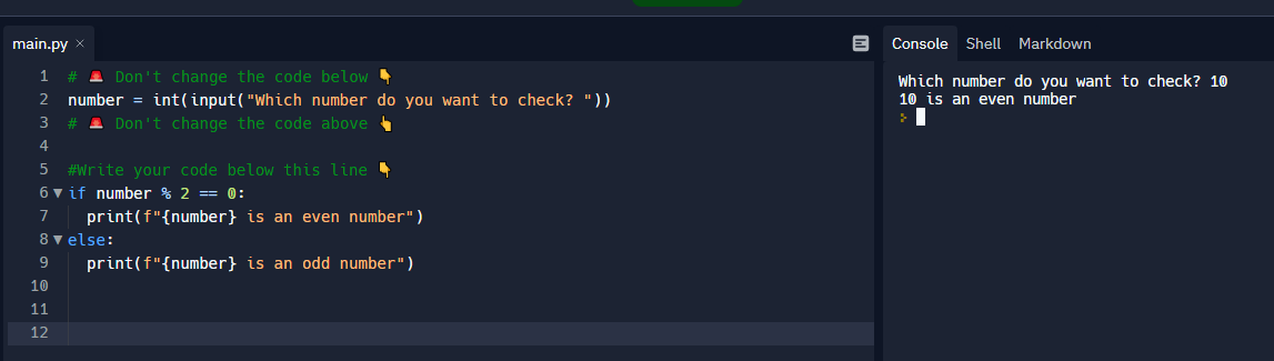 첫번째 과제는 숫자를 입력 받아서 이 숫자가 홀수(odd number)인지 짝수(even number)인지 판단하여 출력하는 프로그램을 만드는 것입니다.