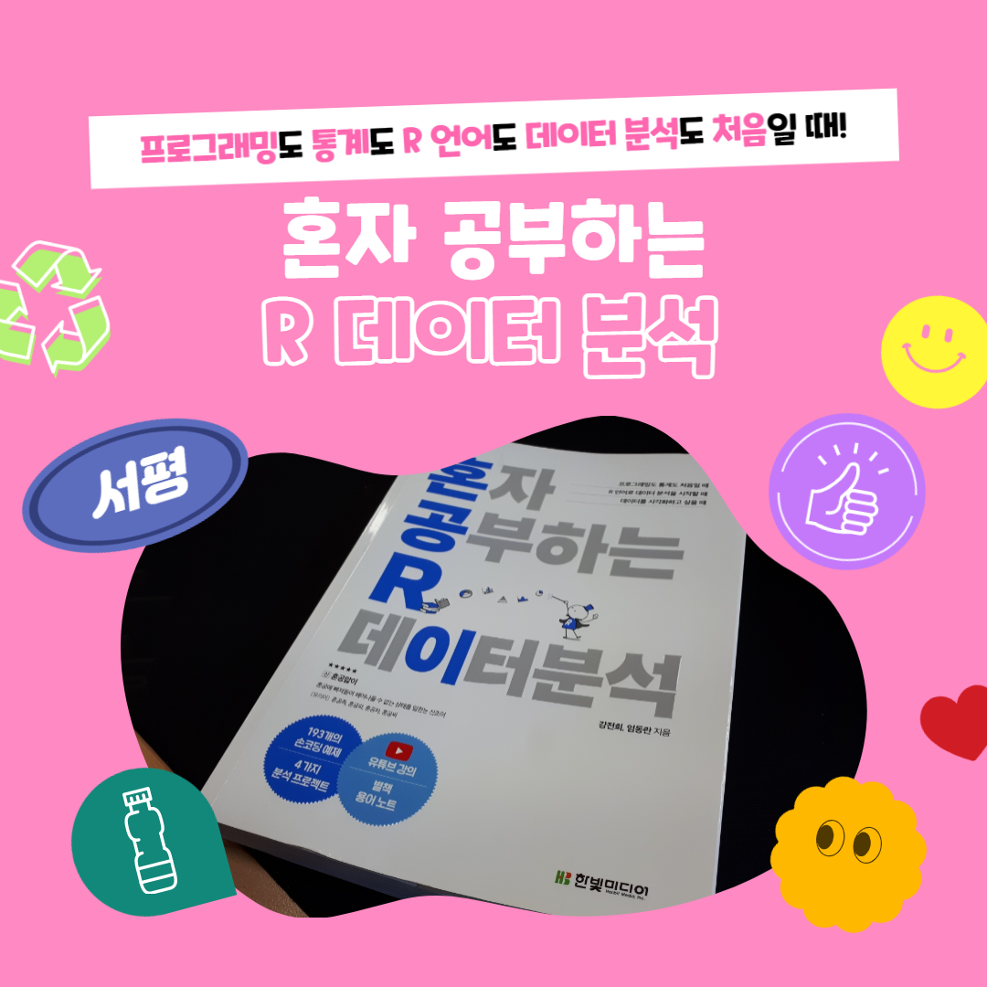 이번 혼자 공부하는 R 데이터 분석을 읽으면서도 혼공앓이(혼공에 빠져들어 헤어나올 수 없는 상태를 일컫는 신조어)에 빠져들 수 밖에 없었습니다. 새로운 것을 처음 배운다는 것은 설렘과 동시에 두려움도 있잖아요. 그 설렘을 기쁨으로 바꿀 수 있었던 시간이었습니다.