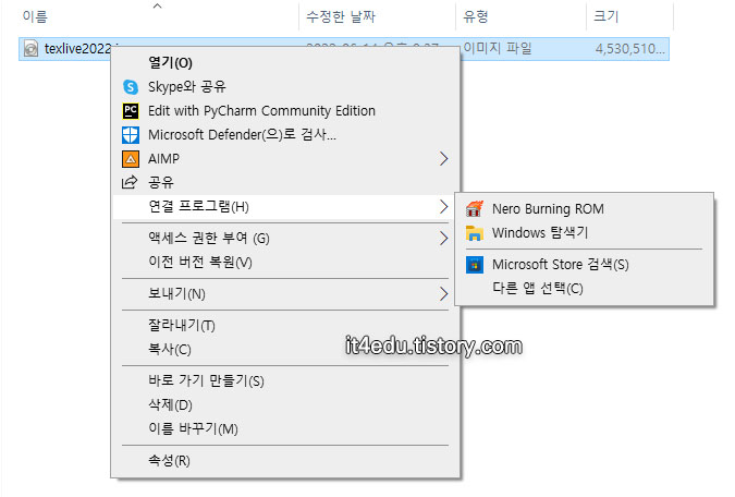 윈도우10 PC에 ISO 파일 연결 프로그램 설정하기