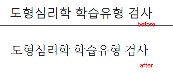 아래 그림에서 위쪽은 적용 전, 아래 쪽은 적용 후의 모습입니다. 결과가 잘 반영되었습니다.