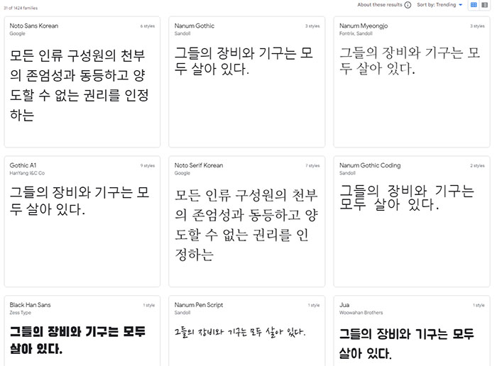 웹페이지에 사용할 마음에 드는 폰트를 선택합니다.