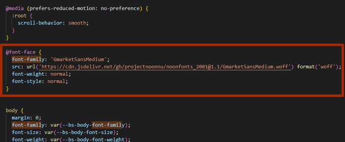 src: url('https://cdn.jsdelivr.net/gh/projectnoonnu/noonfonts_2001@1.1/GmarketSansMedium.woff') format('woff');