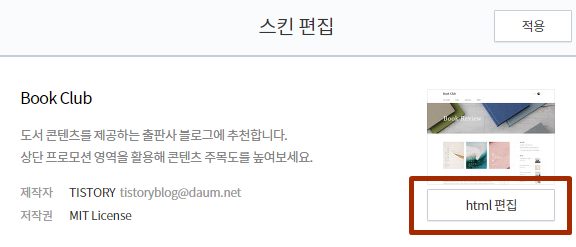 스킨 편집 페이지가 나타나면 [ html 편집 ] 을 클릭합니다.