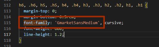 그리고 나서 폰트를 사용할 태그에 font-family를 적용해줍니다.
