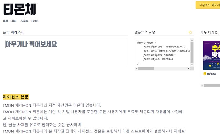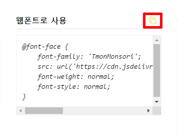 제가 선택한 티몬 몬소리체의 CSS 스크립트입니다. 폰트마다 url 링크가 다릅니다.