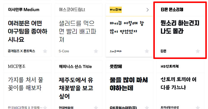 눈누 사이트에 접속하셨다면 사이트 내에서 자신이 적용하고 싶은 폰트를 선택합니다.
