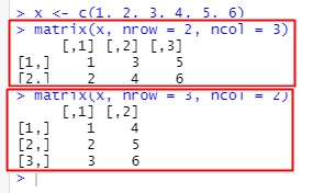 matrix(x, nrow = 2, ncol = 3)