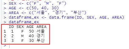 dataframe_ex <- data.frame(ID, SEX, AGE, AREA)