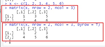 matrix(x, nrow = 2, ncol = 3, byrow = T)