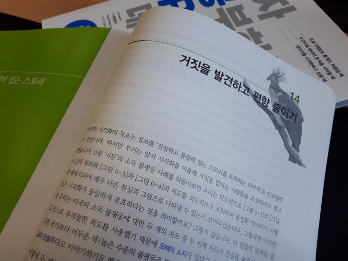 이 책은 특정한 데이터 시각화 툴을 깊이 있게 A-Z까지 알려주는 종류의 책은 아닙니다. 디지털 도구 자체에만 초점을 맞추기보다는 데이터를 이용하여 스토리를 만드는 과정에 대해 충실하게 다루고 있는 책입니다.