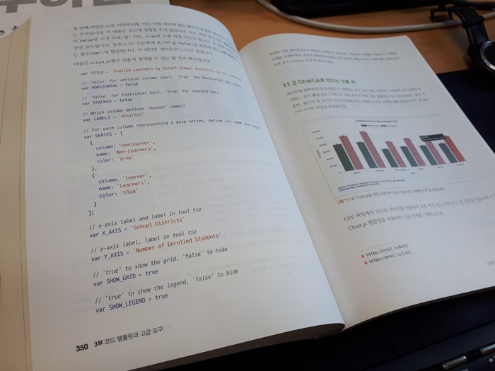 다루고 있는 도구의 양과 종류가 엄청 많습니다. 책에서 설명한 대로 초심자도 쉽게 배울 수 있는 두 개의 도구(구글 스프레드시트와 데이터 래퍼 차트)만으로도 입문 수준의 거의 대부분을 완료할 수 있어서 큰 부담 없이 읽을 수 있었습니다. 처음 보는 생소한 도구들도 많이 만나볼 수 있었습니다.