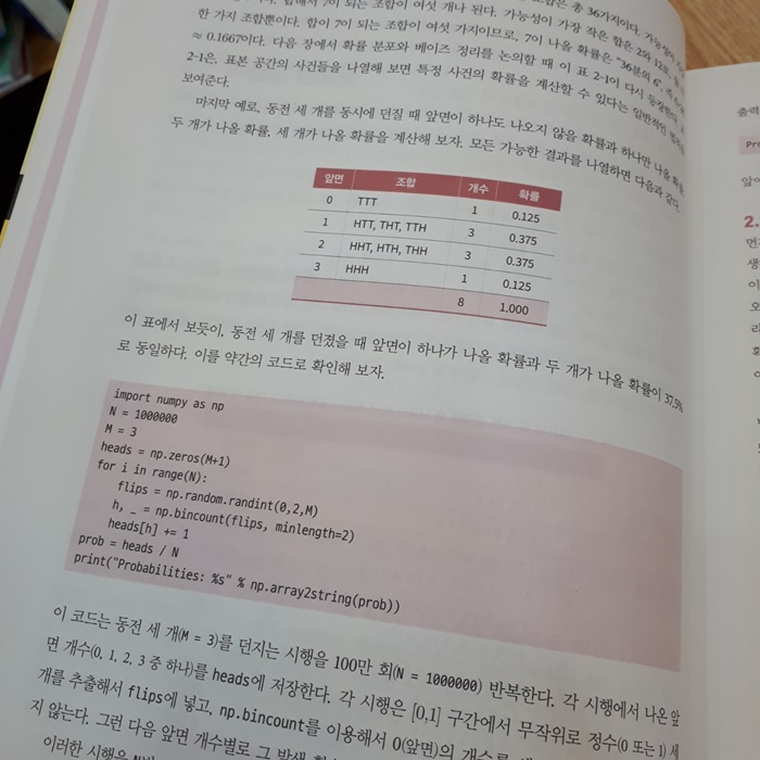 기본적인 수학 이론에 대한 설명이 있고 이를 파이썬 코드로 구현을 해봅니다. 기초 확률 이론에서 시작하여 확률 분포, 통계학, 선형대수와 미분에 이르기까지 학부 수준의 기초 수학 이론들을 가볍게 살펴볼 수 있습니다. 수학 책이기는 하지만 심층학습에 필요한 수학들을 다루고 있기 때문에 아주 깊게 다루지는 않지만 상당히 수준 높은 내용들도 등장합니다.