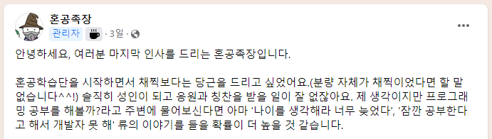이상하게 혼공단 활동은 한 번 해보면 끊을 수 없는 매력이 있습니다. 분명 혼자 공부하는 책인데 함께 공부하는 재미가 있거든요. 스터디한 내용을 정리하고 정리한 내용을 페이스북 그룹에 공유하면 격려해주는 고마운 분들의 댓글과 좋아요가 학습에 엄청 동기부여가 됩니다. 그 중에 한 몫을 하는 분이 바로 이분입니다.