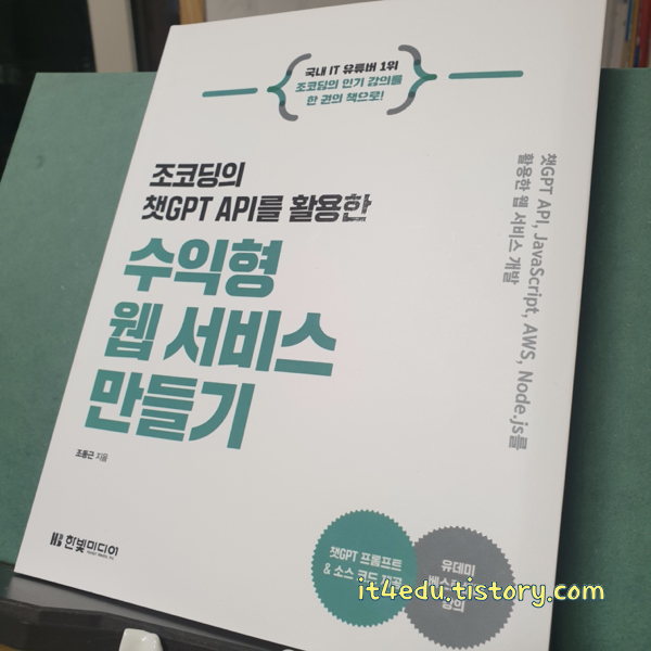 챗GPT 열풍은 계속 되고 있는데, 소문으로만 듣고 있다가 최근에야 관심을 갖고 공부를 해야겠다는 마음을 먹었습니다. 이번 한빛미디어 "나는리뷰어다 2024" 활동을 시작하면서 첫 책으로 읽게 된 책이 바로 "조코딩의 챗GPT API를 활용한 수익형 웹 서비스 만들기"입니다.