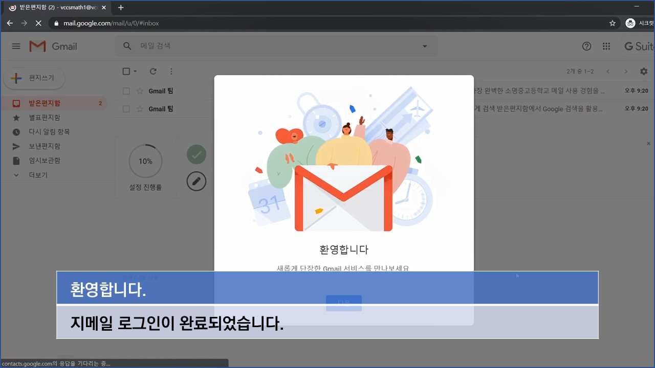 이제 비밀번호 변경이 끝났습니다. 지메일 로그인이 완료되고 환영한다는 안내가 나오네요.