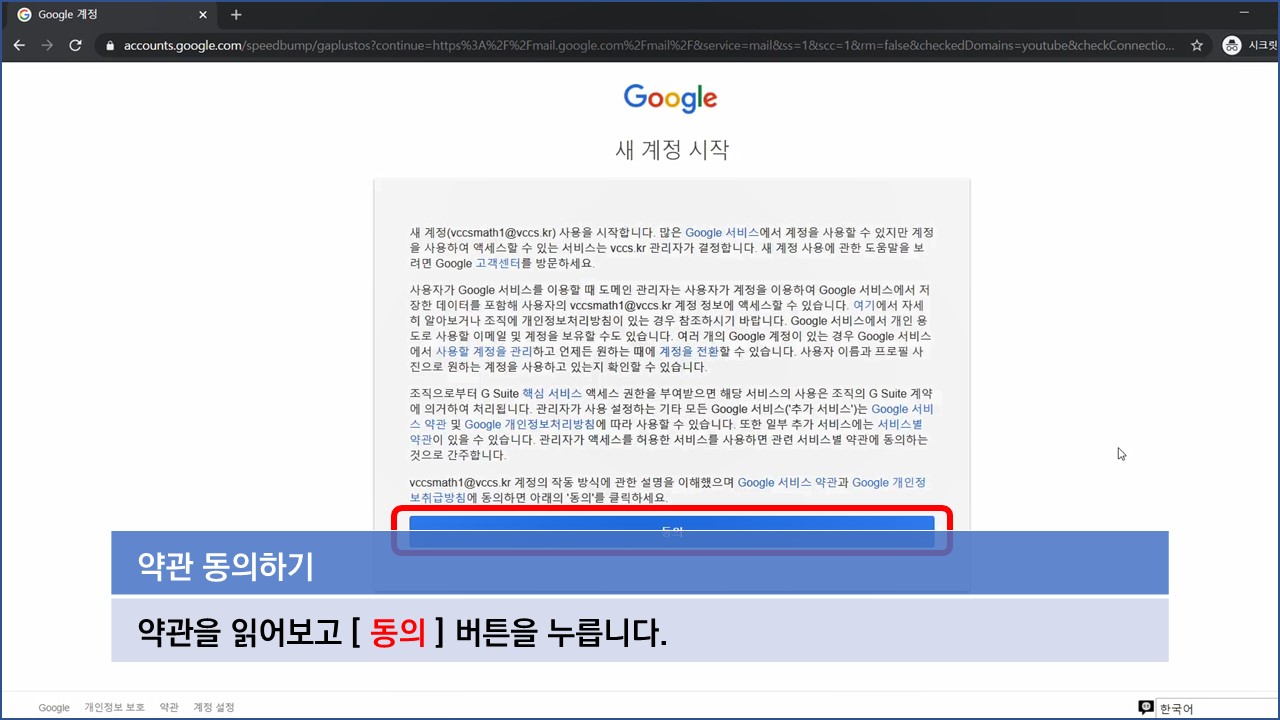 아이디와 비밀번호를 제대로 입력하면 약관에 동의하라는 창이 나타날 거에요. [ 동의 ] 버튼을 눌러서 다음으로 넘어갑시다.