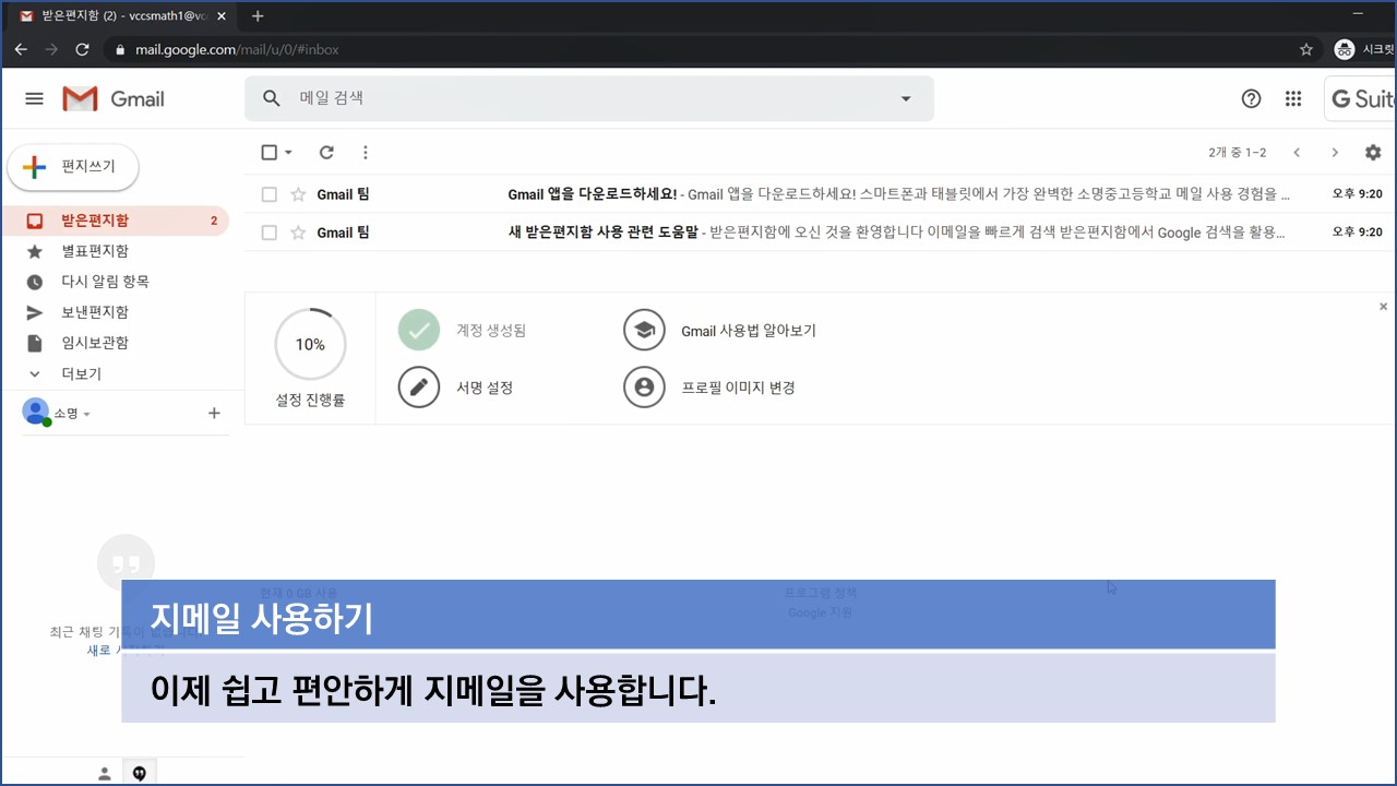 혹시 기존 gmail을 사용하고 있던 친구들이 있나요? 그런데 학교에서는 그 계정과는 별도로 새로운 계정을 사용할 거에요.
